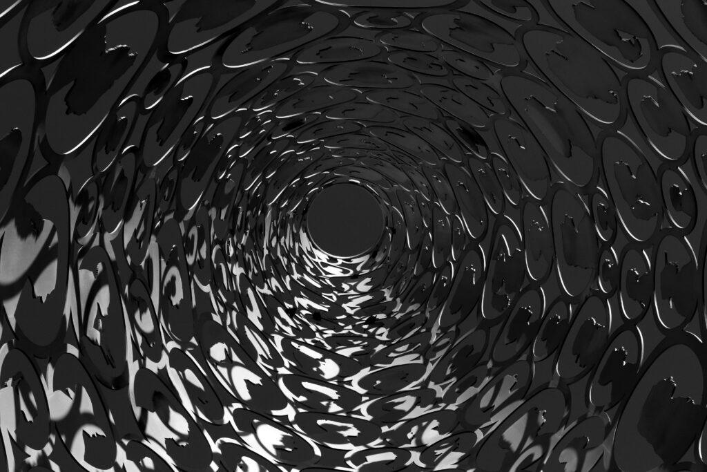An abstract of a really cool art exhibit – I should have looked to see if there was a plaque I could reference for the name. This sculpture (if that’s what you can call it) is cone shaped. I went under it and pointed my camera upwards. I photoshopped the heck out of this picture too so you can’t tell it’s the sky behind it.